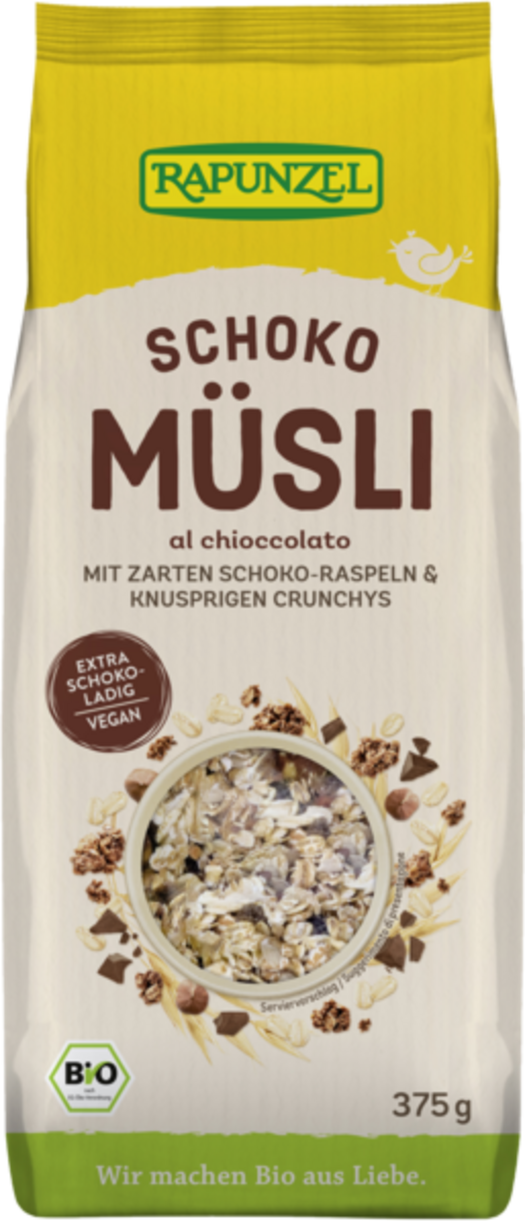 Puffad amarant från österrikiskt ekologiskt jordbruk ger den här müslien fina rostade smaker: tillsammans med riven mörk choklad, crunchy nut crunchy och ädel bourbon vanilj en riktig frukosthit! Tillsätt havregryn, det mättar länge och gör dig redo för dagens utmaningar. Den veganska müslien är bäst blandad med varm eller kall mjölk, med yoghurt eller med en grönsaksdryck efter eget val.