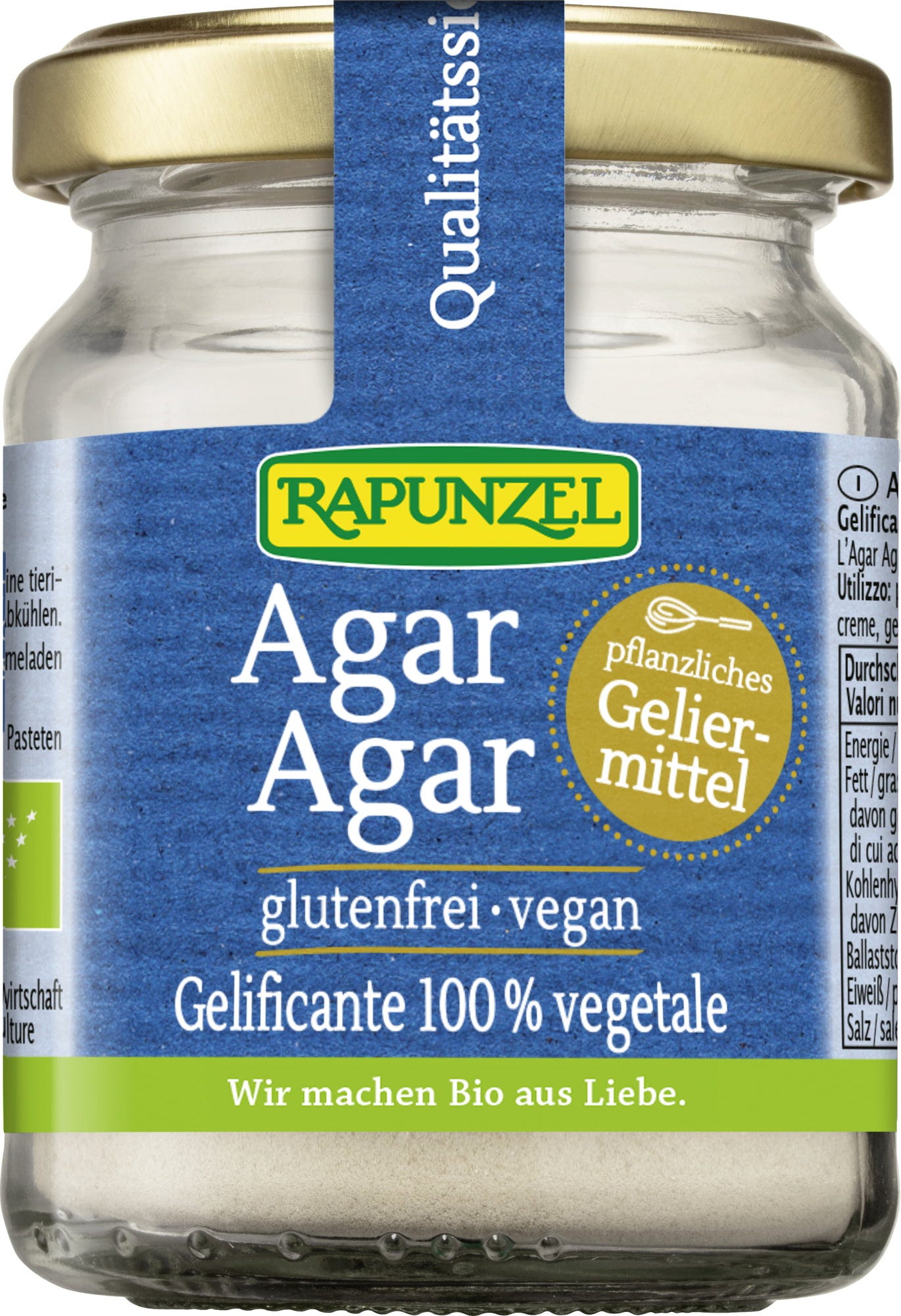 Agar-agar används som ett vegetabiliskt alternativ till konventionella geleringsmedel, särskilt i veganska rätter. Du kan använda den här algbaserade produkten för att gelera fruktspridningar, glasera pajer eller tjockna såser. Agar agar är naturligt vegansk, glutenfri och mycket produktiv. Den har neutrala smakegenskaper, så du kan använda den i nästan alla rätter och bakverk - oavsett om den är mycket mild eller mycket aromatisk.