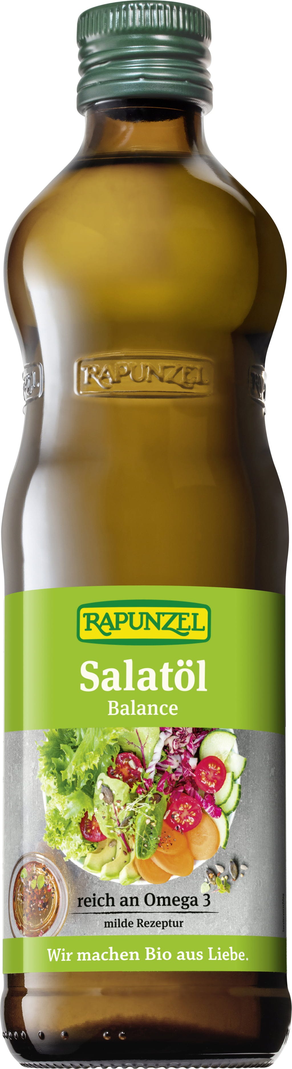 Rapunzels salladolja består av raps- och sesamolja som kallpressas var för sig och sedan blandas med omsorg för att uppnå en fin balans. Den milda smaken passar utmärkt till alla sorters kalla sallader och råkost.
