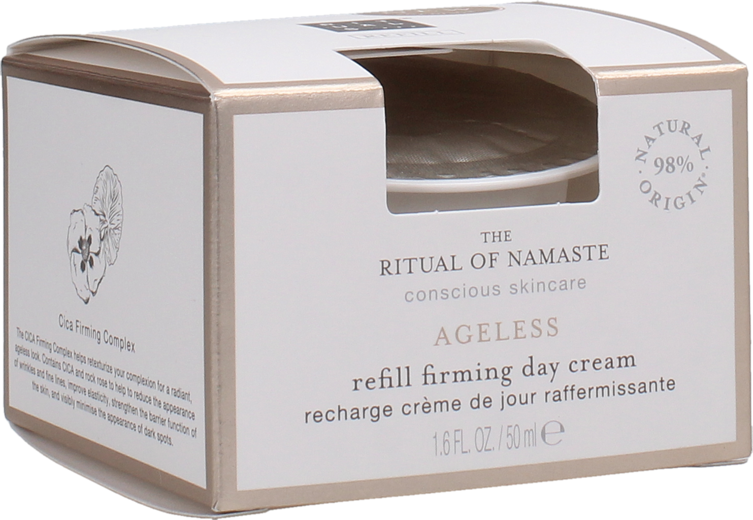 Med denna praktiska refill kan du enkelt fylla på den eleganta behållaren i The Ritual of Namaste Firming Day Cream och ge din hud en extra dos vård!