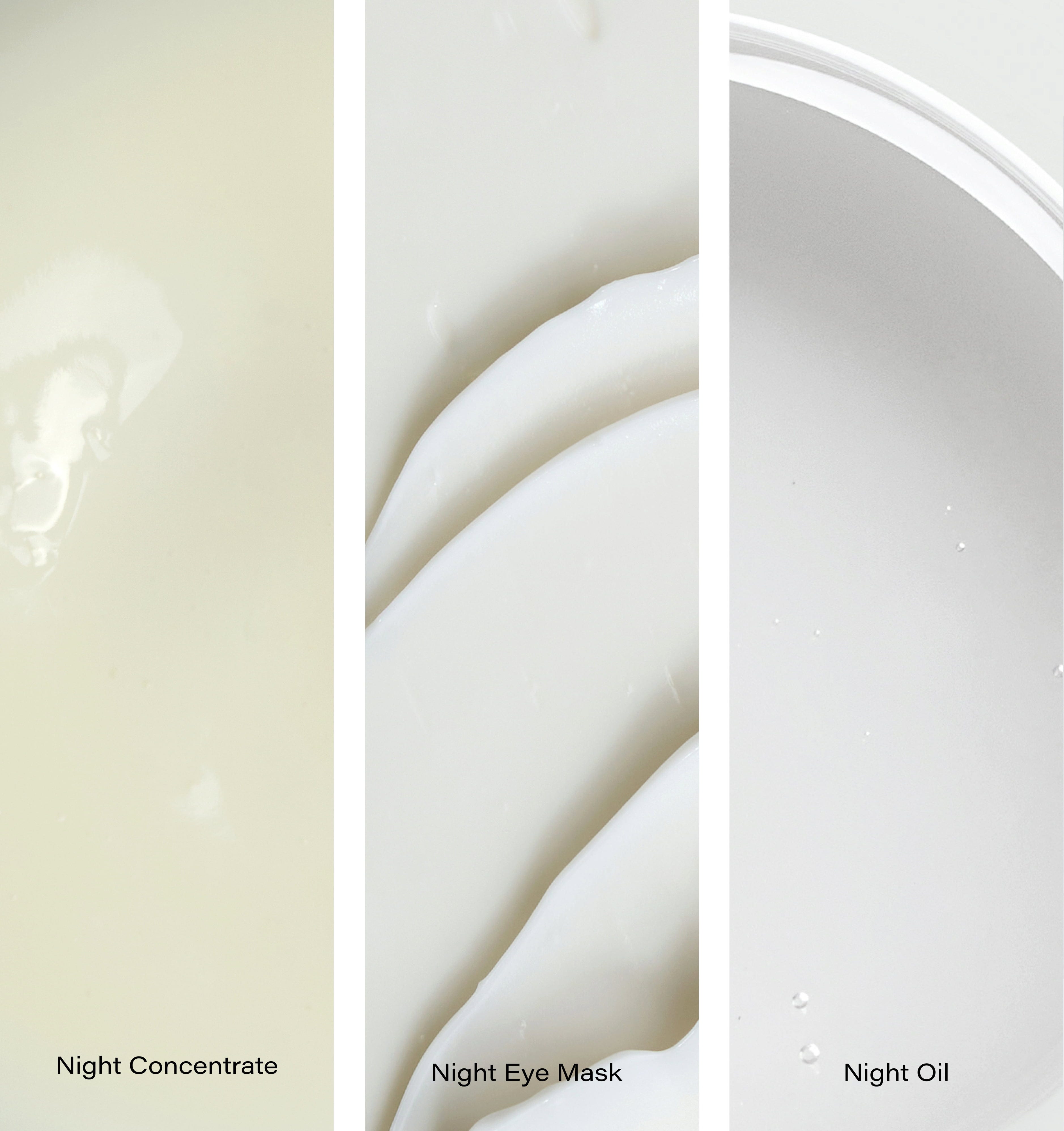 - Steg 3: Night Oil med bakuchiol, squalane och lavendel: ger intensiv näring, jämnar ut torrhetslinjer och låser in fukt utan att kännas fet.