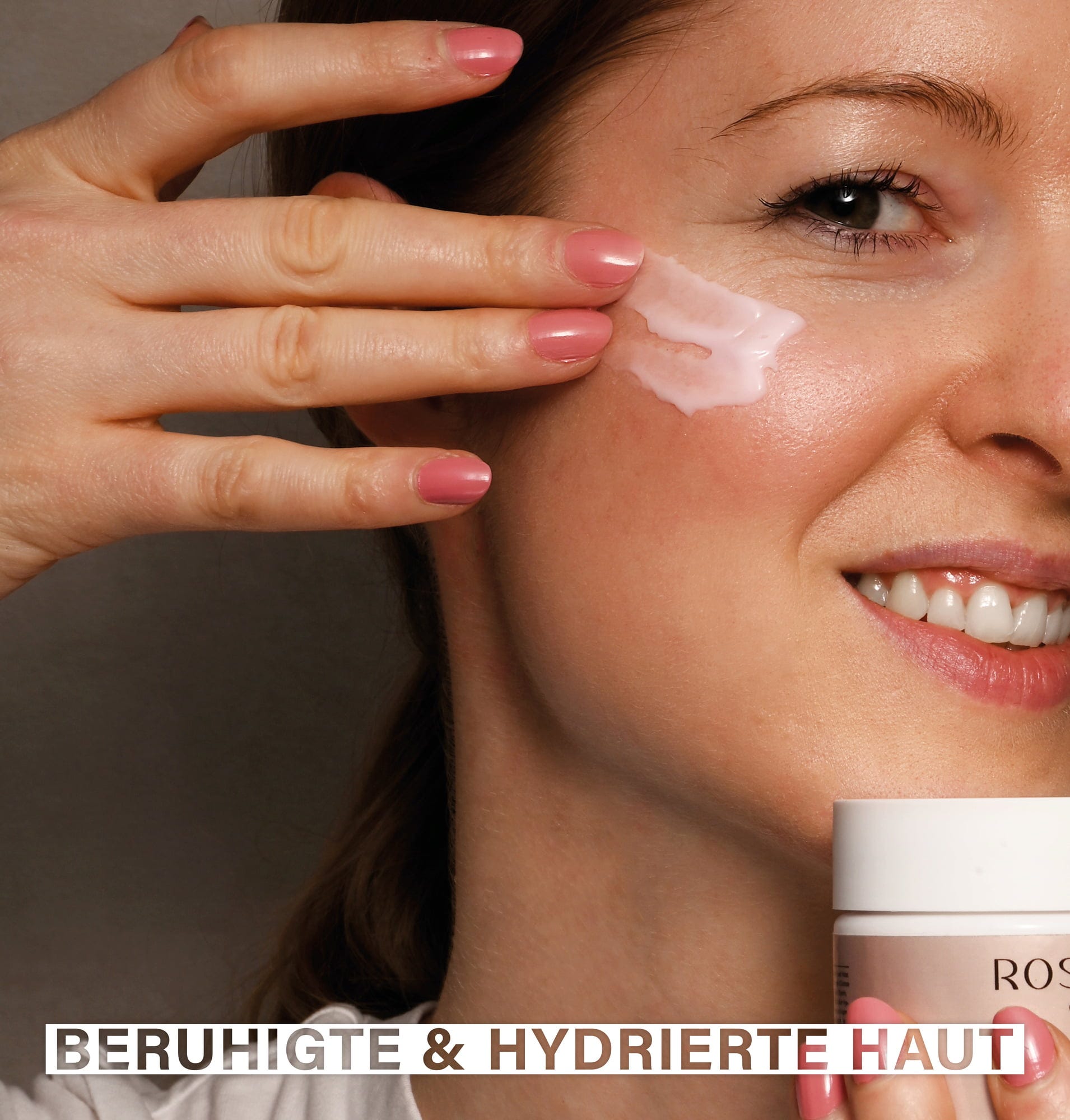 Denna dagkräm ger ansiktet lyster. Med rosenkvarts ädelstenvatten blir den känsliga huden lugnad och avstressad. Under tiden ger aloe vera och naturlig hyaluron regenerering och fukt. Dagkrämen är rik på antioxidanter och E-vitamin - och därmed optimalt skydd mot skadlig miljöpåverkan. Perfekt för normal, torr, känslig, stressad, mogen och till och med problematisk hud (förutom extremt fet hud).