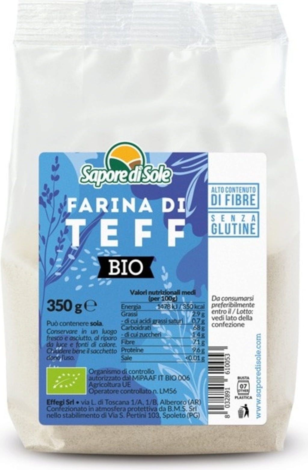 Sapore di Sole Teffmjöl Glutenfritt Ekologisk, 350 g