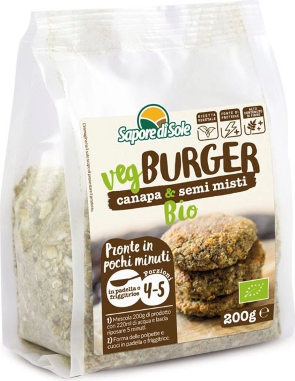 Sapore di Sole VegBurger med Hampa och Blandade Korn Ekologisk, 200 g