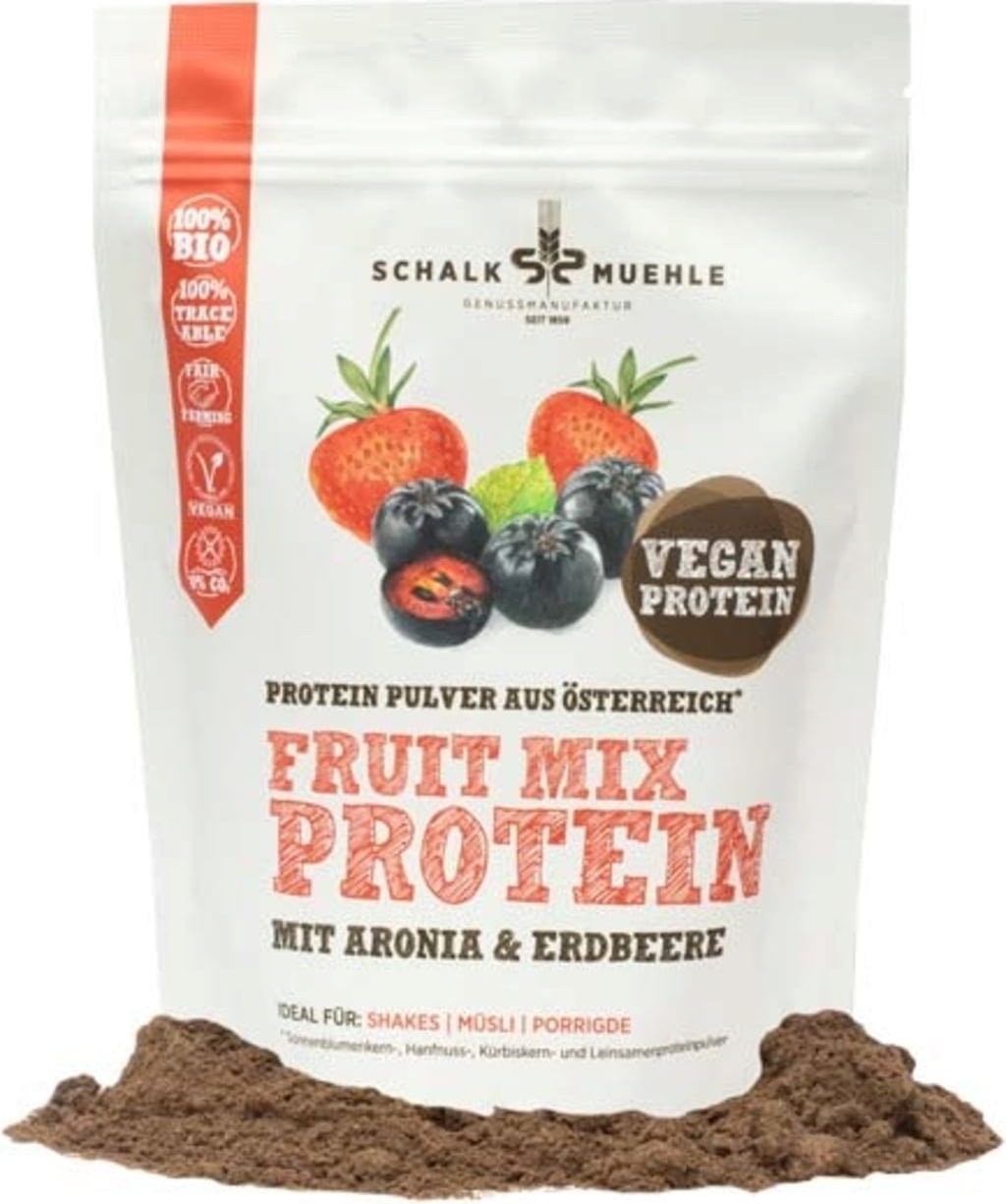 svenska recensioner skriven för Schalk Mühle Fruit Protein Mix med Aronia & Jordgubbe, Eko