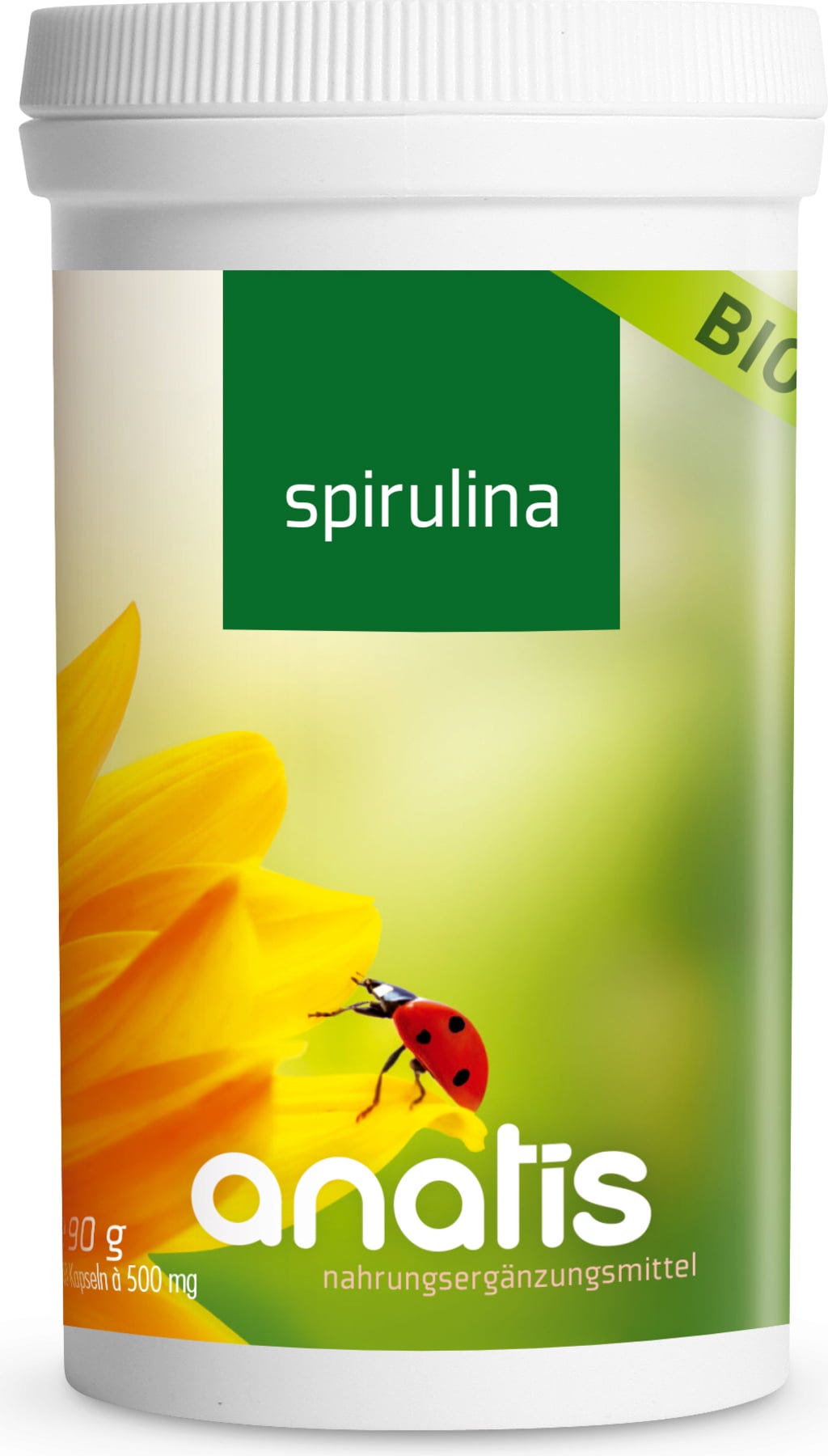 Spirulina platensis är en sötvattenalg som förekommer i varma alkaliska vatten. Den innehåller alla 8 essentiella aminosyror och alla 10 icke-essentiella aminosyror. Spirulinapulvret i dessa kapslar är inkapslat för hand i Österrike utan tillsatser.