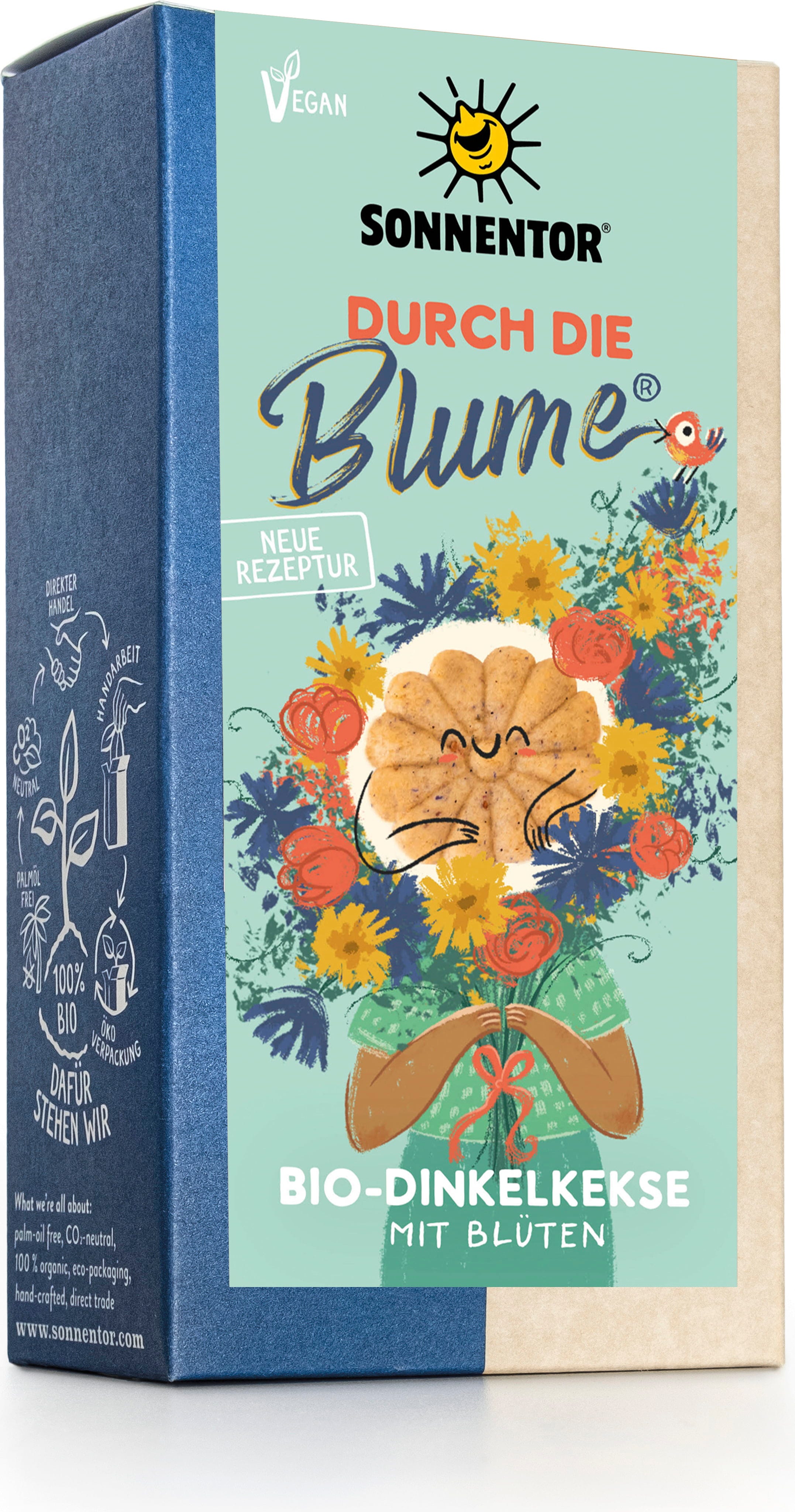 Säg det med blommor - men utan bladverk! Dessa goda ekologiska dinkelkakor från Sonnentor innehåller inte bara nötigt dinkelvete, utan även jordgubbar, blomblad och soligt citronoljaarom. Receptet rundas av med en hint vanilj och lite ingefära för en finstämd smakupplevelse.