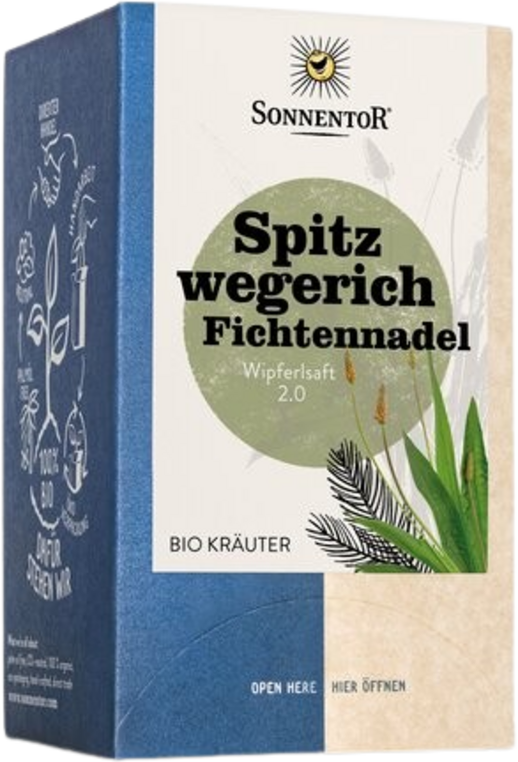 Dess karaktäristiska utseende är omisskännligt och på sommaren kan man hitta groblad överallt i utkanten av ängar och åkrar. I kombination med granbarr fungerar den som toppdressing och som duo har den en unik doft och smak. Se fram emot de söta, kådrika och träiga smakerna som stiger upp i näsan och som kan avnjutas intensivt. Sonnentor kombinerar de två örterna i praktiska tepåsar för snabb infusion och njutning när tiden är mogen.