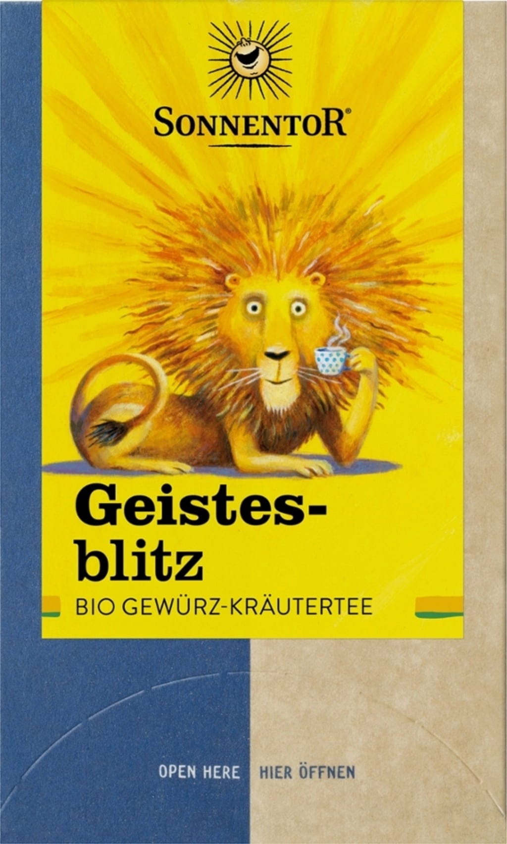 Känner du att koncentrationen sviktar och inspirationen har tagit semester? Då är det dags för Geistesblitz-teet från Sonnentor. Fänkål, anis, ingefära, lakritsrot och pepparmynta väcker sinnena till liv igen. En touch vanilj balanserar smaken, ett aromatiskt fyrverkeri i 100 % ekologisk kvalitet.