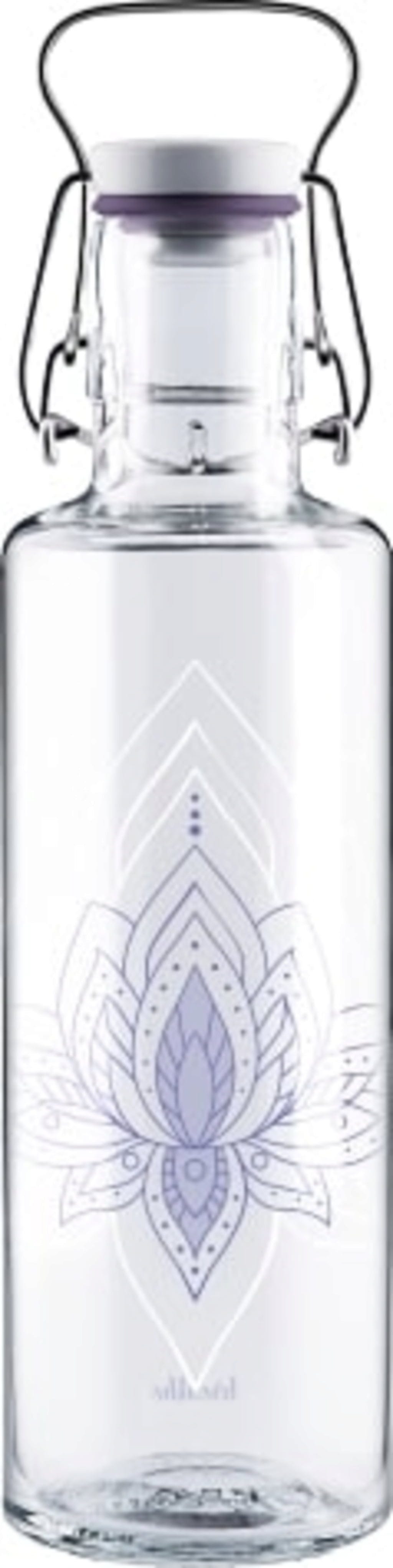 Med denna glasflaska garanteras rent dricksnöje. Den tryckta lotusblomman säkerställer också andlighet, renhet och upplysning. För stunder av fullständigt lugn.