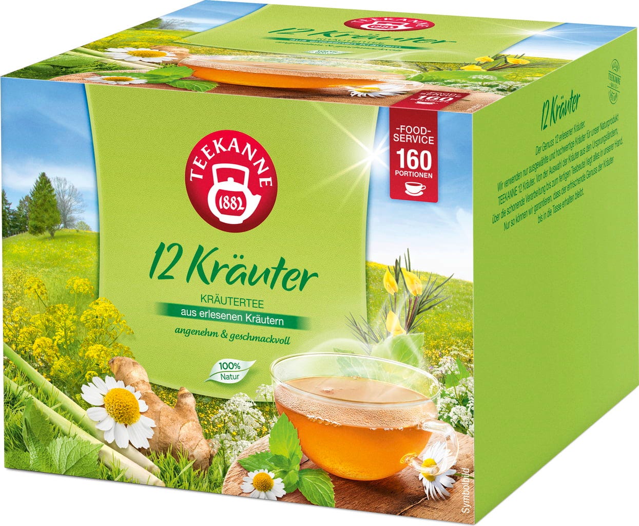 TEEKANNE 12 Herbs family pack är perfekt för örtteälskare: 40 påsar vardera är fulla av koncentrerad örtkraft. Blandningen innehåller till exempel citrongräs, citronmeliss, mynta och kamomill.