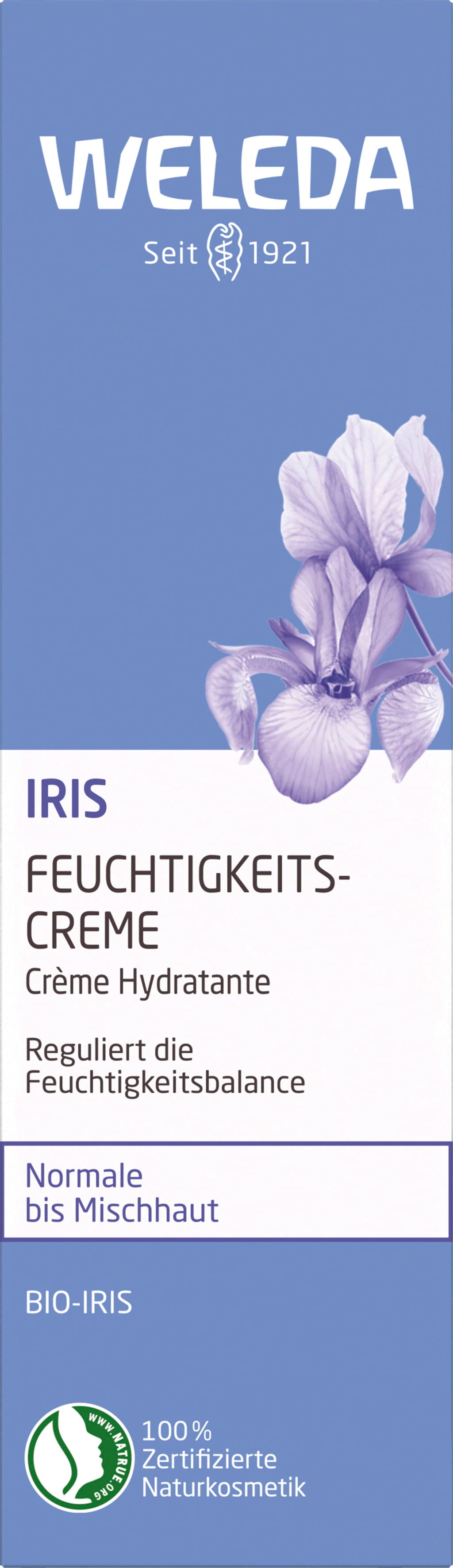 En lätt fuktkräm för normal till blandhy som matar huden med intensiv hydrering, samtidigt som den hjälper till att reglera sin naturliga balans. Ett lättare alternativ till Iris Hydrating Day Cream och utmärkt som bas för smink. Weleda Iris Hydrating Facial Lotion (tidigare Iris Moisture Cream) innehåller rena vegetabiliska extrakt från irisrot och calendula, som är kända för sin unika förmåga att behålla fukt och lugna huden. Mild jojobaolja gör huden mjuk och smidig, samtidigt som den hjälper till att reglera hudens naturliga oljor och hydrering.