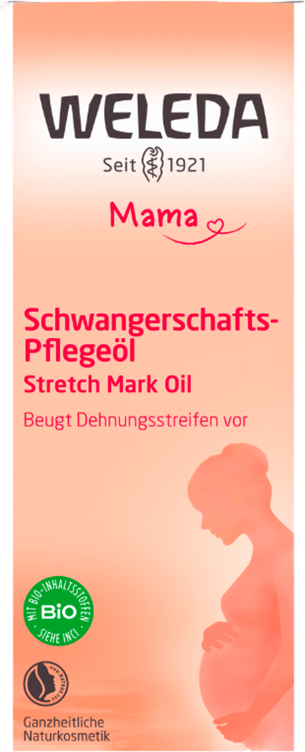 Under graviditeten utsätts huden för stora förändringar - den blir torr och blir tänjd. Weledas olja för bristningar vårdar huden med sin enhetliga formula och skyddar huden från att torka ut. Vid regelbunden användning - från början av graviditeten till 3 månader efter födseln - kan oljan hjälpa till att förbygga bristningar på mage, bröst, skinkor och lår. Essenser av arnika i kombination med oljor av jojoba, vetegroddar och mandel ger ökad elasticitet i bindväv och främjar spänstighet i huden. Oljan ger en sammetslen känsla och en behaglig doft.