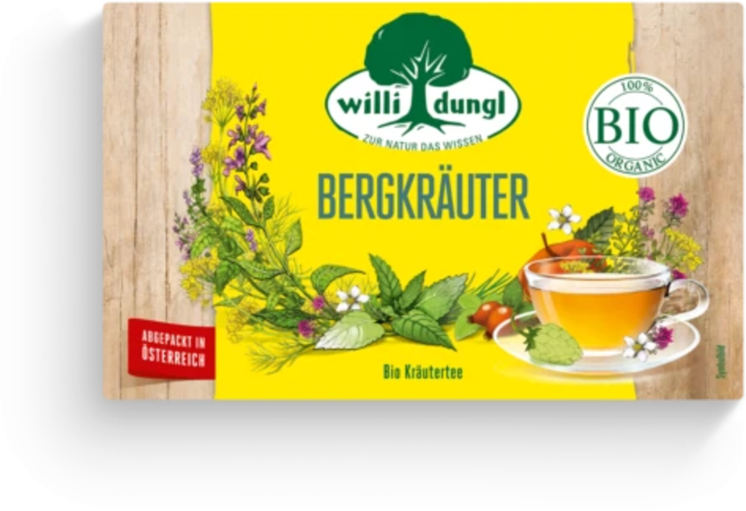 Bergs örtteeblandningen från Willi Dungl kombinerar de bästa ekologiska örterna från bergen och fina ingredienser som salvia, timjan och humle. Björnbärsblad, äpplen, nypon och citrongräs ger en rundad smak.