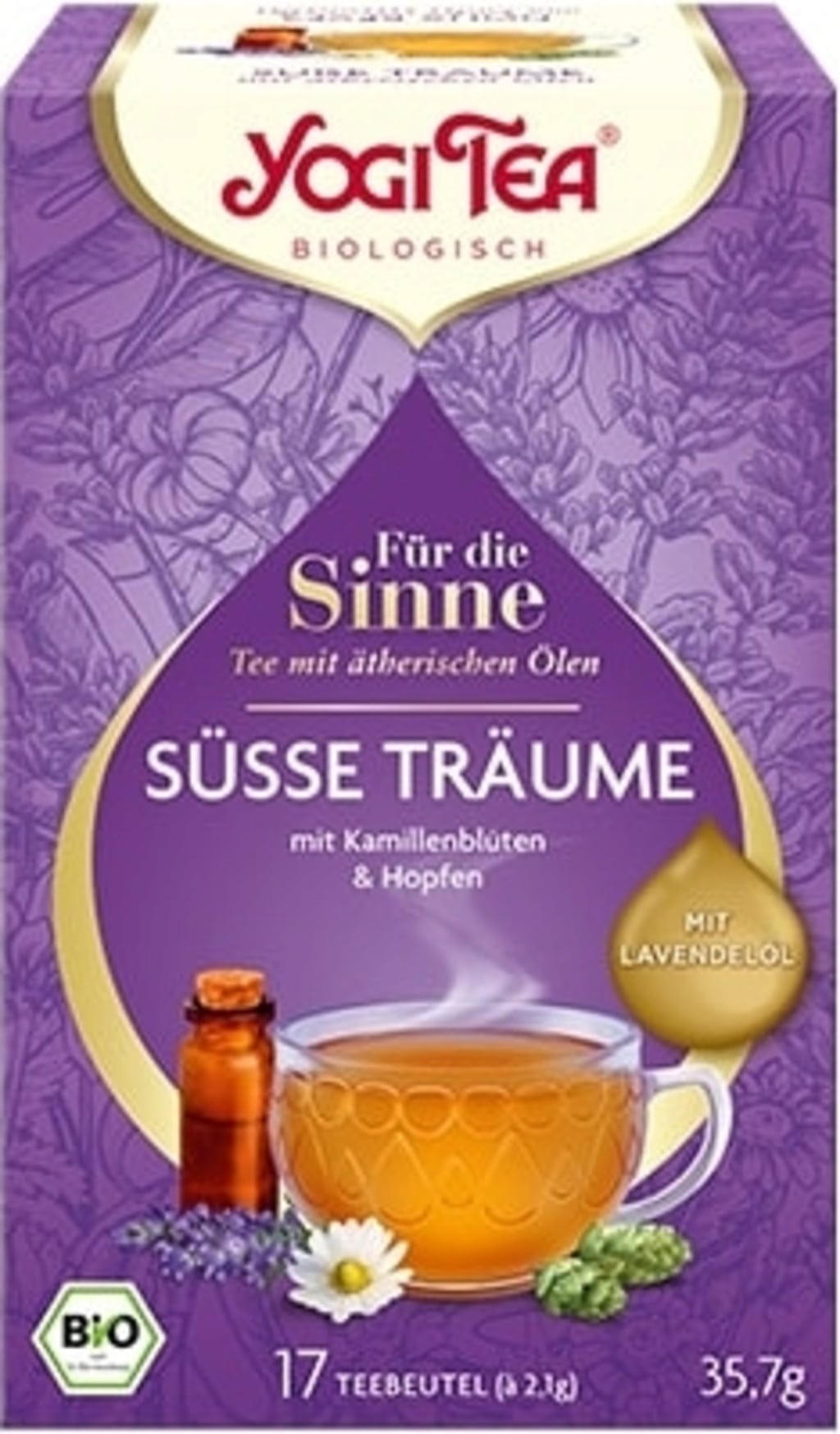 Kamomillblommor, humle & lavendelolja följer dig varsamt in i drömmarnas värld. En harmonisk blandning med en sensuell doft som fyller rummet redan när du öppnar förpackningen. Ett utsökt te som lovar mer än bara tomma ord - det håller vad det lovar.