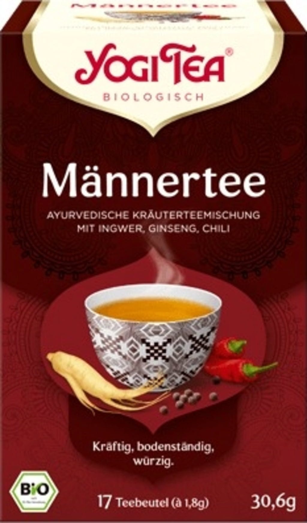 Vardagens krav tär på vår inre balans. Ayurveda lär oss att finna lugnet genom balanserade val - även i det vi dricker. YOGI TEA® Men's Tea är en harmonisk blandning med rostade toner & tydlig chili-karaktär. En eller två koppar ger den där energin du behöver inför dagens utmaningar.